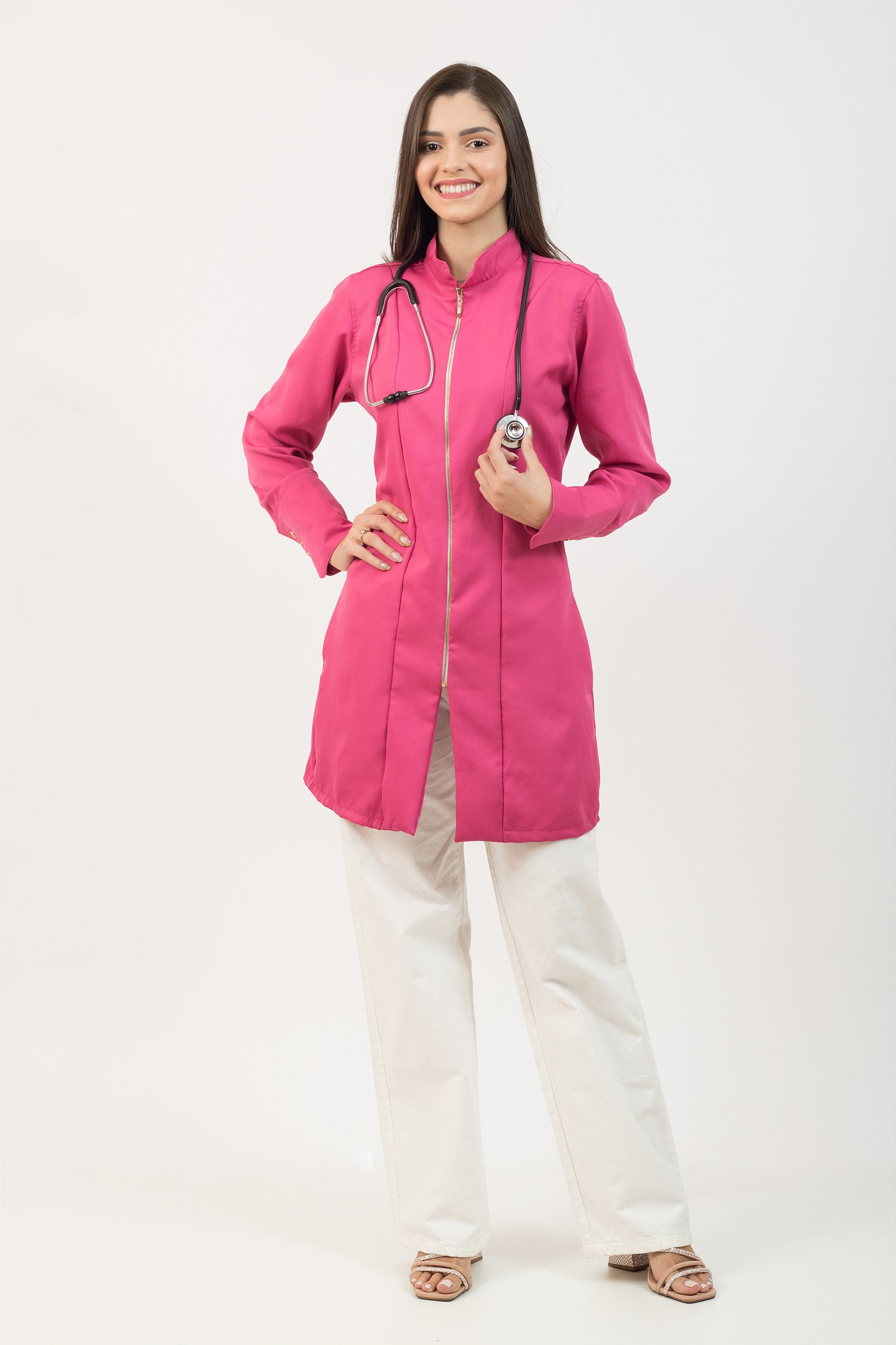 Descubra a elegância atemporal do Jaleco Feminino Elite, com sua modelagem acinturada que abraça suas curvas de forma perfeita, emanando feminilidade.